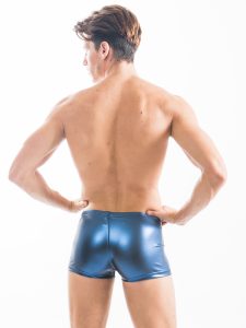 The styles released are Liquid Skins collection. Bikini, Sports Brief, shorts, singlet, G, and pants. As I said before it was originally in black and had a rubber-like look. A few years back they released the same line in silver that was super hot. That went away before this year’s collection. The blue is a new and interesting fun new take on this line! Leave it to N2N Bodywear to do something out of the box and rocks it!