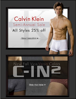 Men’s Underwear Store is having thier annual CK Sale. They have some of the best of the CK line on sale. Some of my favorites lately from CK are the CK Steel Briefs. If you haven’t bought any, head over and pick up a few pairs.