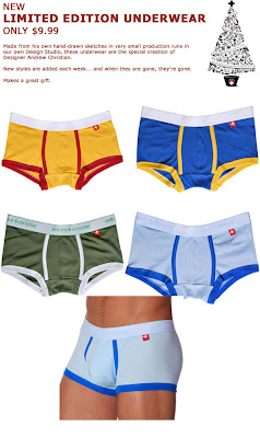 “After many successful years with Andrew Christian, I wanted to begin making something as a thank you to my diehard and loyal friends,” says fashion designer Andrew Christian, “therefore I decided to begin to make a line of “limited edition” underwear that only those who check the website often would be abreast on. We won’t announce when the next style comes out, you will just have to find it by checking out the website.”