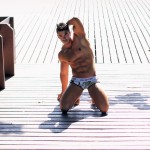 Rufskin is one of those companies not shy and will make some great gear that if it’s not fetish boarders on fetish. This is Logan in the Zapp top and the swim is Ashton. You maybe saying, that’s a great bikini, but it’s not, its actually a swim jock. So the back is a jock cut! So be bold or don’t wear it