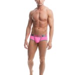 So you maybe asking what colors and styles are in the neon collection? The current colors are blue, pink and yellow. All bright and fun and as they say you will be having a party in your pants. The styles are pretty basic and include a brief and trunk. The brief retails for $9.95 and trunk is $12.95