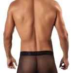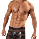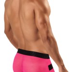 The boxer is a mix of solid and mesh panels and a solid mesh back. But don’t worry it has a solid pouch so you won’t be showing it all off. The mesh comes in two different colors black and pink. That means you can go really wild with the pink or keep it subtle with the black. The solid material is a leather like black material on both colors.