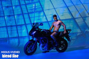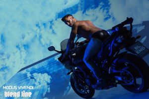 The Blend Line campaign was shot on location in Thessaloniki by talented photographer Panos Misailidis, whose images powerfully reflect the tough-looking yet elegant blend that this line is all about. Combining action with sleek style, model and keen motorcyclist Kostas Milkas is accompanied by John Kalomoiris in a playfully sexy story. A roaring campaign for a line full of great attitude!