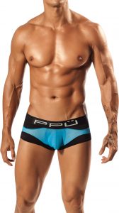 Mesh has always been a part of PPU in some fashion. This collection has a new trunk that is part solid and part mesh. The 1555 trunk has a blue mesh pouch that runs all the way around the pair. The front shows off EVERYTHING but the back has less mesh. It’s available in black and blue. Each pair has the same mesh.