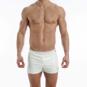 Modus Vivendi White Leather brief 03Known for their innovative and fashion forward designs, Modus Vivendi, has just released a new line of fashion underwear and shorts to complement its best selling Leather Line, setting a new trend in the market: white leather! The four new additions are made from a slightly off-white, top quality, leather look material contoured to perfectly fit the male form. The Leather Brief has a great looking contour pouch and a naturally enhancing back. The Leather Boxer blends a classic cut boxers design with industrial inspired detailing. The Leather Bottomless is the sexiest deign of all featuring a contour pouch and an provocative, fully open back. Last but not least the Leather Shorts feature retro style sides with a fashion forward and sexy press stud fastening!