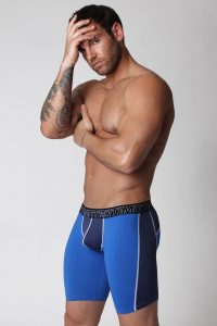 The line comes in a brief, jock brief, jock, legging and short. All of these are perfect to work out in. These are leggings that you could wear by themselves to the gym. I am seeing more and more guys wear what was once considered an undergarment as their work out gear. The same could be said for the short.