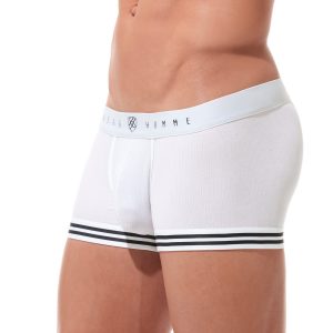 The New Evoke line has an amazing Austrian micro modal ribbed knit fabric. The fabric comes in three colors, Orange, Navy, and White. One thing that runs through all the pairs is the striped elastic. It’s bigger in the jock and boxer briefs. It’s pretty bold in those and it’s just around the legs. The waistband is a solid white. The smaller sizes have a much smaller striped elastic.