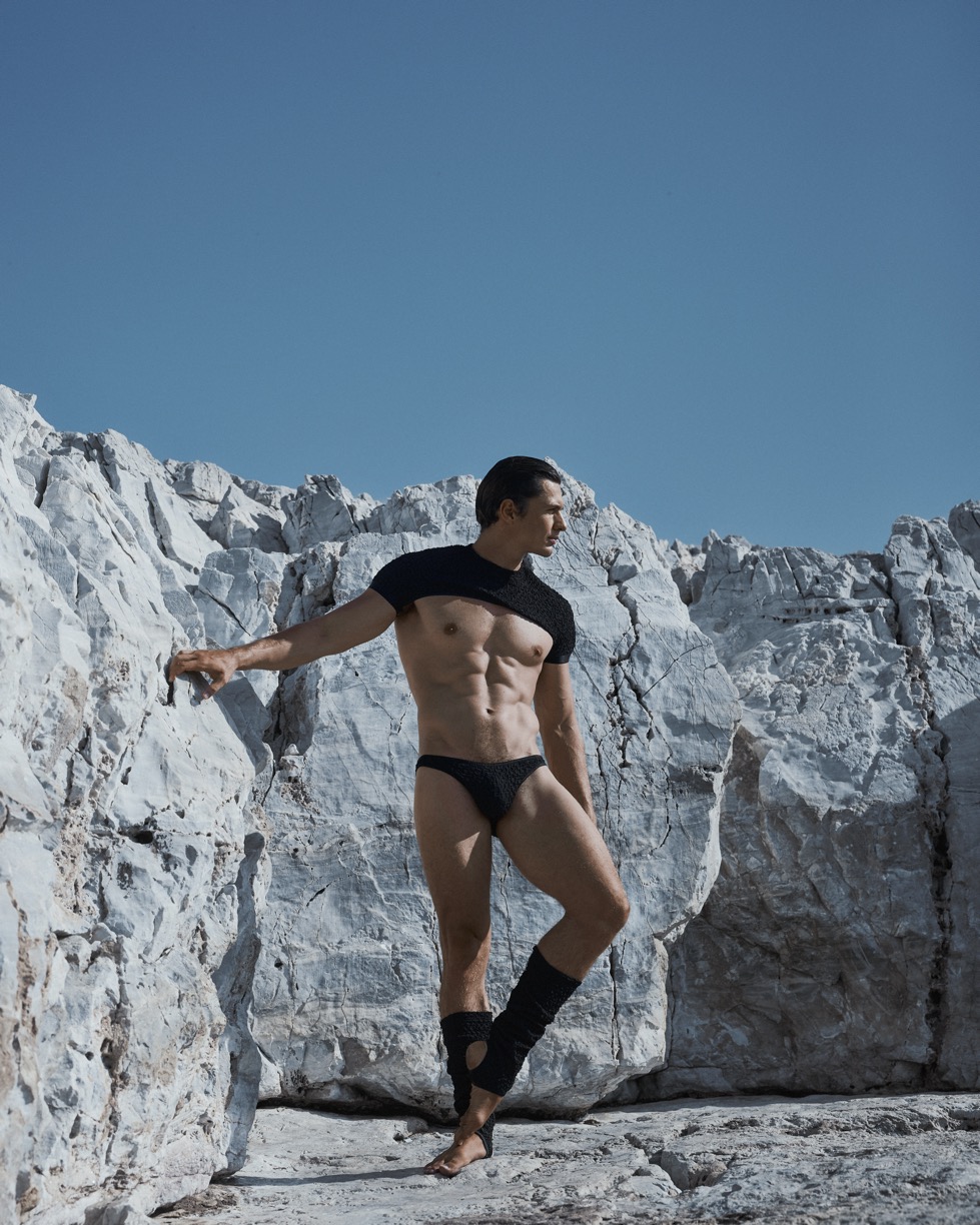 The collection’s aesthetic reflects the harmony between strength and grace. The elasticated base ensures support and stability, while the sheer tulle overlay softens the silhouette, creating a balance between structure and fluidity. Designed to feel like a second skin, each piece offers unrestricted movement and effortless style, making it ideal for both performance and everyday wear. The Ballet Line embodies power, elegance, and boldness, without compromising on comfort — a modern interpretation of classical beauty reimagined for today’s man.