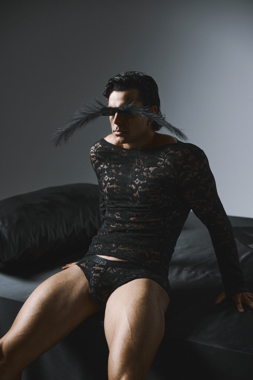 Every piece is shaped to offer a fluid silhouette that moves with the wearer. The elasticated lace delivers comfort and flexibility, while maintaining a bold, fashion-forward look. The black colorway elevates the collection’s darker, poetic energy and positions it as a key FW26 highlight, ideal for both intimate styling and statement layering.