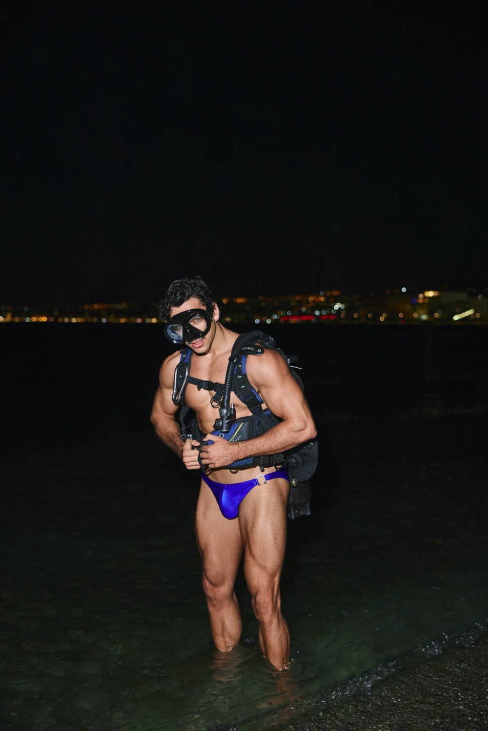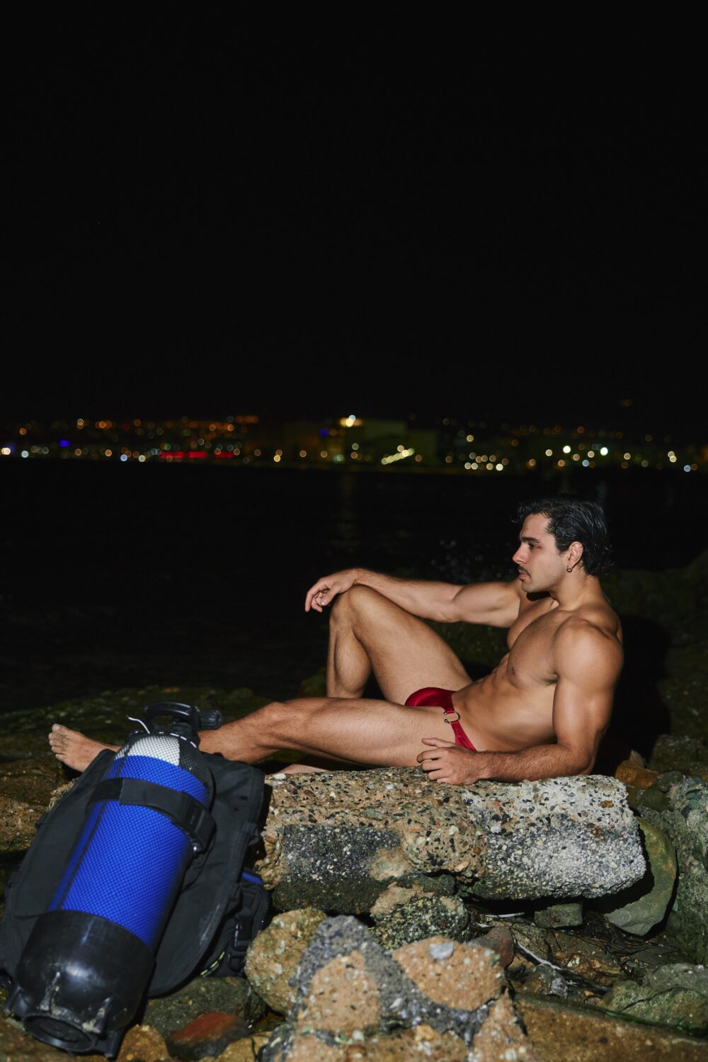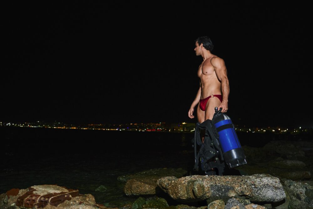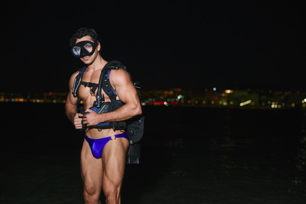 Bold, provocative, and visually arresting, the Prince Albert Swimwear Line reaffirms the brand’s commitment to pushing boundaries in men’s fashion while celebrating unapologetic self-expression. The Scuba Diving Campaign captures a cinematic moment suspended between two worlds: the hidden calm of the ocean and the electric pulse of the city. Shot on rugged rocks at the water’s edge, the imagery follows a confident figure emerging from the depths, illuminated against a dramatic night skyline. Both powerful and atmospheric, the campaign thrives on contrast light versus darkness, stillness against motion.