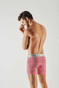 There are several different styles in the newest collection. One is the Hawai 41628 Boxer Briefs. The underwear features a cool and stylish blurred stripe pattern that helps to show off the pouch. The look has a nautical feel to me that just makes you think of warm weather and summertime. The pattern comes in two different colors, blue and coral. The pairs are made of super stretch cotton fabric to make a sleek defining fit. The pouch is designed for support and definition. This would be a great pair for the gym, or going to work, or just lounging around.