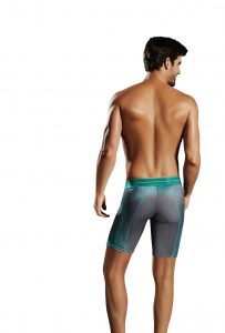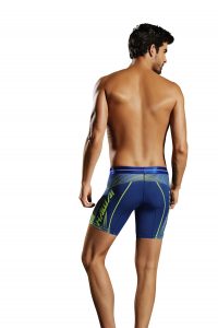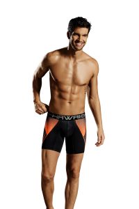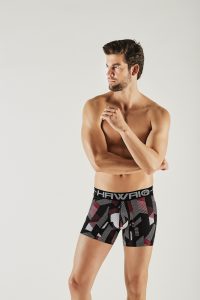 Another of the collection is the 41701 Boxer Briefs. This style is really sporty looking. The underwear is solid color with a contrasting color and the word Hawai along the side of the underwear. It is made of super soft stretch microfiber fabric, that is 87% polyester and 13% spandex. The pair comes in three colors – blue with neon green accent, black with orange accent, and gray with a teal accent. The pair features a longer length to protect against rubbing and chafing. That would make this pair perfect for working out or just wearing every day.