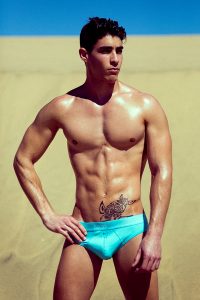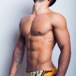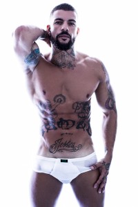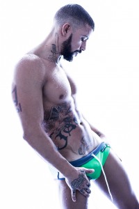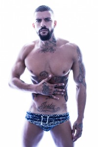 Adrian C. Martin shot tattooed model, Alain Rodríguez. He’s wearing swimwear and underwear of the brands Clever, WildmanT and Hawai.