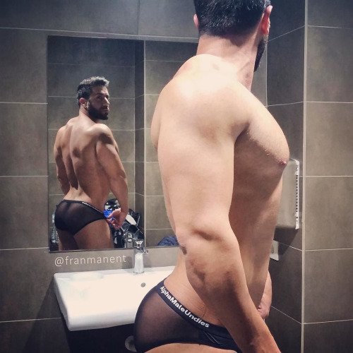 AMU is delighted to be able to show you more images of #alphamale Fran Manent @FranManent Fran is wearing AMU Extreme Shorts, and Sheer mesh Bikini briefs, Fran is a Fitness Coach, check out his website franmanent.com where you to could get the Alpha Male Body.