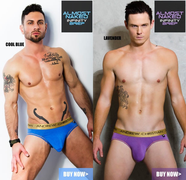 Are you a fan of the Almost Naked collection? Then check out the lastest colors in the Almost Naked Infinity Brief. the two colors are Cool Blue and Lavender. Purple have been a big color in undies and is still going strong. Find this and more at the Andrew Christian Site!