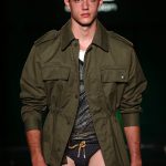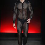 We can find synthetic quilts and leathers in the same garment combined with very fine fabrics such as thin polyamides or meshes, or very elegant and delicate garments including karabiners and ropes, typical of a much rougher and rural context. In summary, a collection which is not governed by traditional aesthetic patterns, one which presents a man and woman who are survivors of a global catastrophe.