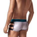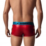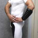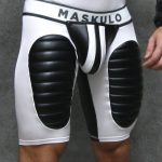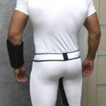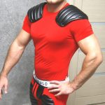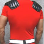 I have a X shaped harness in Neoprene, but this was going to be my first real leather harness, and I was really excited to get the Bulldog harness. As a pretty chesty guy (read: professional aerialist), the Bulldog harness draws focus to my broad shoulders, and chest. Derrick himself makes everything, and builds harnesses with a three snap amount of “ease” so you can snap the straps one step tighter or looser than your “baseline” (with the snaps being about an inch apart). When I opened my package from him, the first thing you notice right away, is the quality of leather being used. As I said, I work with leather all the time, and he is clearly choosing very top grade hides. This harness has a triple layer of leather: a doubled outer layer, with a single black leather layer lining the inside against your skin. His rings are quality metal and welded shut. Snaps are strong and sturdy (and custom colored to match the different leather colors and thread he uses).