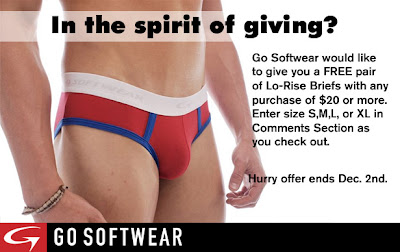 From now until December 2nd, for every purchase at Go Softwear of $20 or more, you get a free pair of their lo-rise briefs. It couldn’t be simpler! If you have tried their lo-rise briefs, I would recommend that you should. They are the great to wear with low rise jeans.!