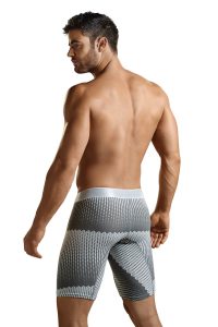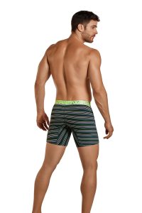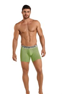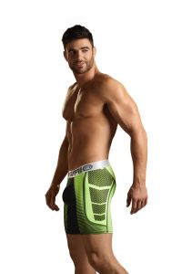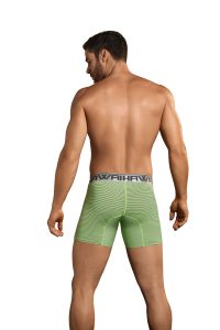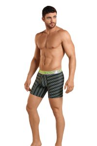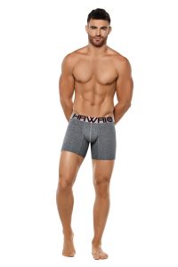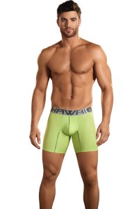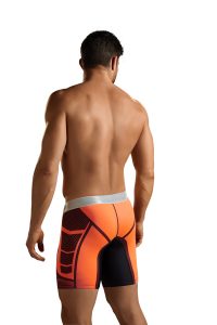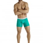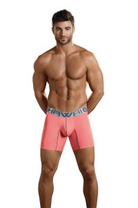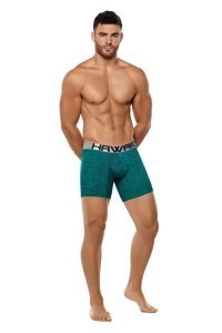 Another of the collection is the 41701 Boxer Briefs. This style is really sporty looking. The underwear is solid color with a contrasting color and the word Hawai along the side of the underwear. It is made of super soft stretch microfiber fabric, that is 87% polyester and 13% spandex. The pair comes in three colors – blue with neon green accent, black with orange accent, and gray with a teal accent. The pair features a longer length to protect against rubbing and chafing. That would make this pair perfect for working out or just wearing every day.