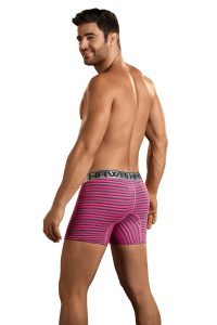 There are several different styles in the newest collection. One is the Hawai 41628 Boxer Briefs. The underwear features a cool and stylish blurred stripe pattern that helps to show off the pouch. The look has a nautical feel to me that just makes you think of warm weather and summertime. The pattern comes in two different colors, blue and coral. The pairs are made of super stretch cotton fabric to make a sleek defining fit. The pouch is designed for support and definition. This would be a great pair for the gym, or going to work, or just lounging around.