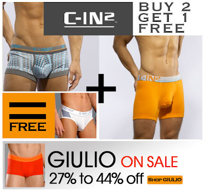 His Room has a 25% off sale on all 2(x)ist. You can choose for any brief, boxer brief, thongs or socks. This includes the Carbon No Show line, which has the disintive silver waist band. Also, free shipping on all orders $40 or more!