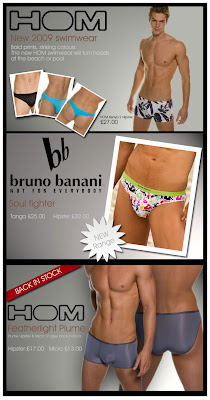 Dead Good Undies has some great new HOM styles for the new year. So head over and check out all the new styles that will make you feel great in 2009. They also have Bruno Banani now available. And just back in stock Featherweight Plume HOM. Head over and get some great new undies for a great new year