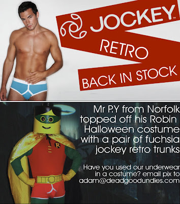 Underwear Nation has turned underwear advertising into an art form. They aren’t a brand, but a retailer. Each month they profile a different pair for the Underwear of the Month Club and create a campaign around it. Their photographer, Jerrad Matthew, has done some of the hottest work in men’s underwear. The locker room campaign for the Timoteo Varsity series stands out most. In it, model Justin Leonard wears the blue and white underwear against a backdrop of a red locker room, allowing the underwear to really stand out. They create a new campaign for each month’s pair. Club subscribers get a post card featuring that month’s ad along with the underwear. (I’ve told them they need to create posters of the amazing pictures!)