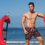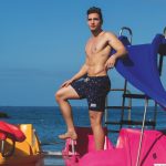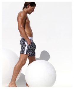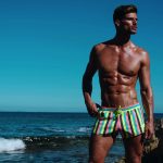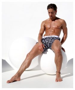 In these sexy photos model Alexander Dorokhov is wearing elegant black and white stripe designs of “Monochrome Stripe” , vibrant colors of “Carnival” , sexy cut of “El Macho” and multi-color chevron print of “Mykonos” swimwear.