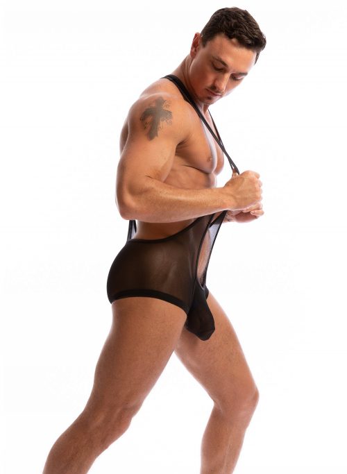 The sheer is a low cut singlet that is made out of 100% see-through material. You will not hide anything in this gear. But if you’re going to wear it, that’s the point!