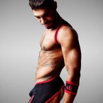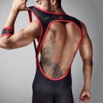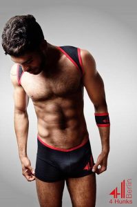 The Catcher Lad B free is a very unique design. It’s more of a cross between a harness and singlet. The black mesh fabric is trimmed with red piping. It leaves very little to the imagination. The front is completely open as is the back. The 4 Hunks description said all eyes will be on you. We couldn’t agree more. The Catcher Lad B Free retails for € 75.