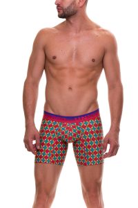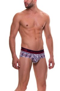 Prints by Mundo Unico are creative! The print for Rudolph brief has an Aztec type of print. It reminds me almost of a needle point type print. The colors of the pair are topped off with a black waistband makes this a super fun pair.