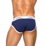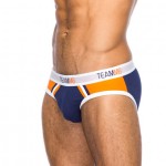 I received the Teamm8 Racer Brief in Navy. The look of this brief is very athletic and sporty, living up to the company name. It has the athletic theme stripes in the front around the package and a great orange and navy color combination up against the white waistband. A look that I think portrays team spirit. The pair is a cotton and elastane mix which is a great combination for comfortable wear all day. Like many underwear companies today, they allow for extra room in the pouch for the more endowed men and a fuller cut in the back for the butt men.