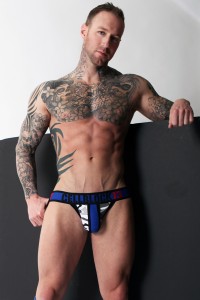 Collections photographed- The first grouping is the Sandstorm Camouflage (white Base). This is a Timoteo.net exclusive Jock Strap. Anything Dylan puts on looks amazing next to his ink and super chiseled body.