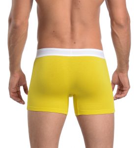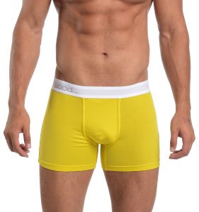 For me, they sit just below the waist and don’t ride, or show crack, which is one of my biggest peeves. The subtle, elastic around the legs keeps them put as well with no bunching up throughout the day. With my peculiar 35” waist, the L isn’t too loose, and fits and shapes my figure nicely. They also add a bit of lift and form to the butt, which I need and enjoy! The closed front holds “the boys” nicely, and looks fantastic. After many a wash they still feel great, almost like the day I got ‘em, no fabric pilling or any misshapenness. The classic boxer-brief style visually elongates the body and has a slimming effect. Plus, the solid yellow looks great against my pale Irish legs!